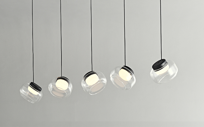 This linear pendant light presents a modern and elegant design with five layered glass and alabaster shades arranged in a row. Suspended from a sleek canopy, the repetition of the luminous orbs creates a striking visual rhythm, perfect for illuminating dining tables, kitchen islands, or other linear spaces. The interplay of materials and light provides a soft, ambient glow.