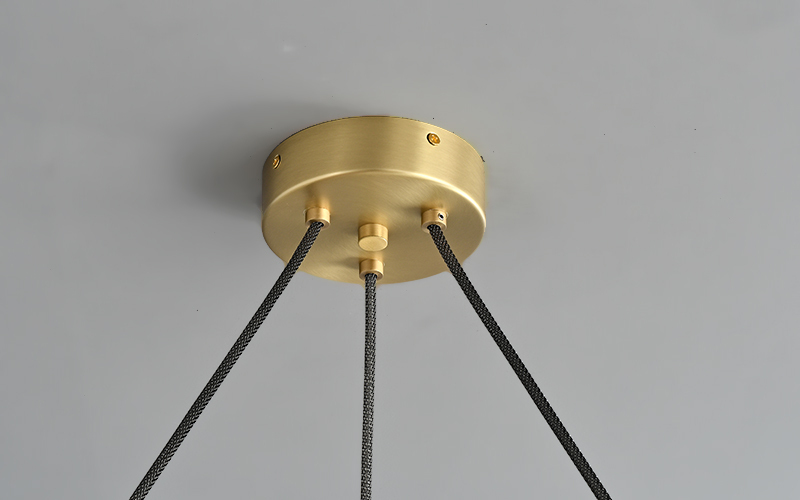 This chandelier features a timeless ring design that highlights the luxurious materials and clean aesthetic. The robust metal ring forms the central element, suspending the six luminous alabaster shades in a balanced circular arrangement. This creates a striking visual presence and casts a warm, inviting glow, making it a sophisticated centerpiece for dining rooms or living spaces.
